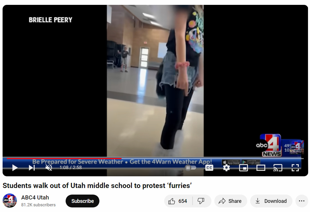 In the YouTube video, students made claims about what the alleged furries had been doing. Often eliciting laughter from the crowd, students claimed the furries “bark every day, but they only bite like once a week,” “bite ankles,” “scratch us,” and “spray us in the eyes with Febreze if they get a chance” after school and in the halls.